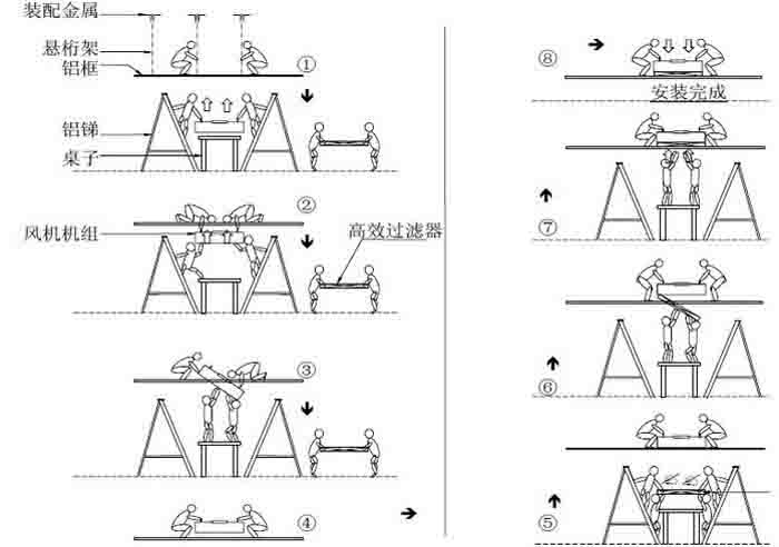 定位:根据设计图纸,确定FFU的安装位置,确保FFU的出风方向与洁净室的设计要求一致。